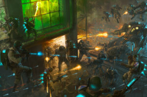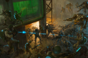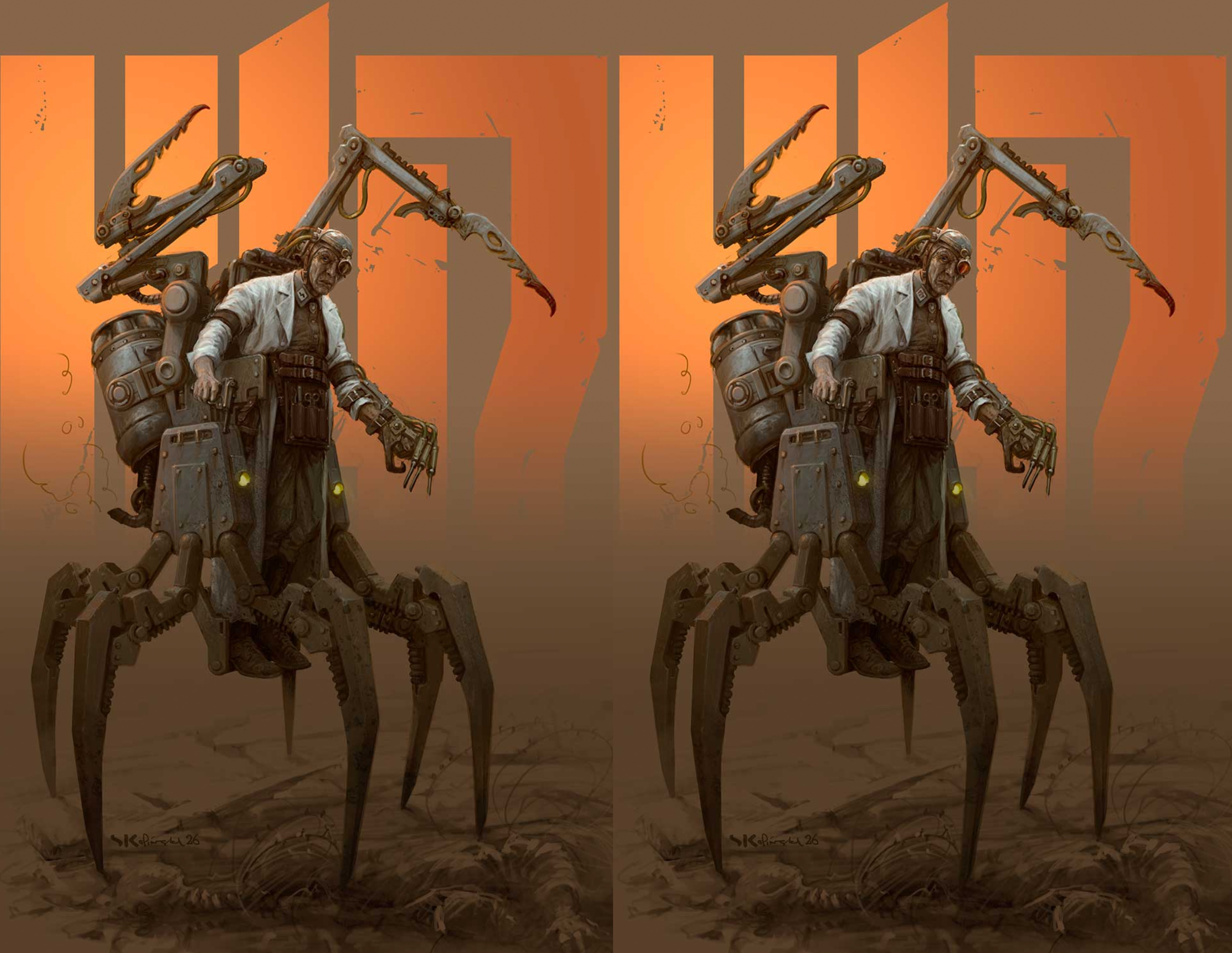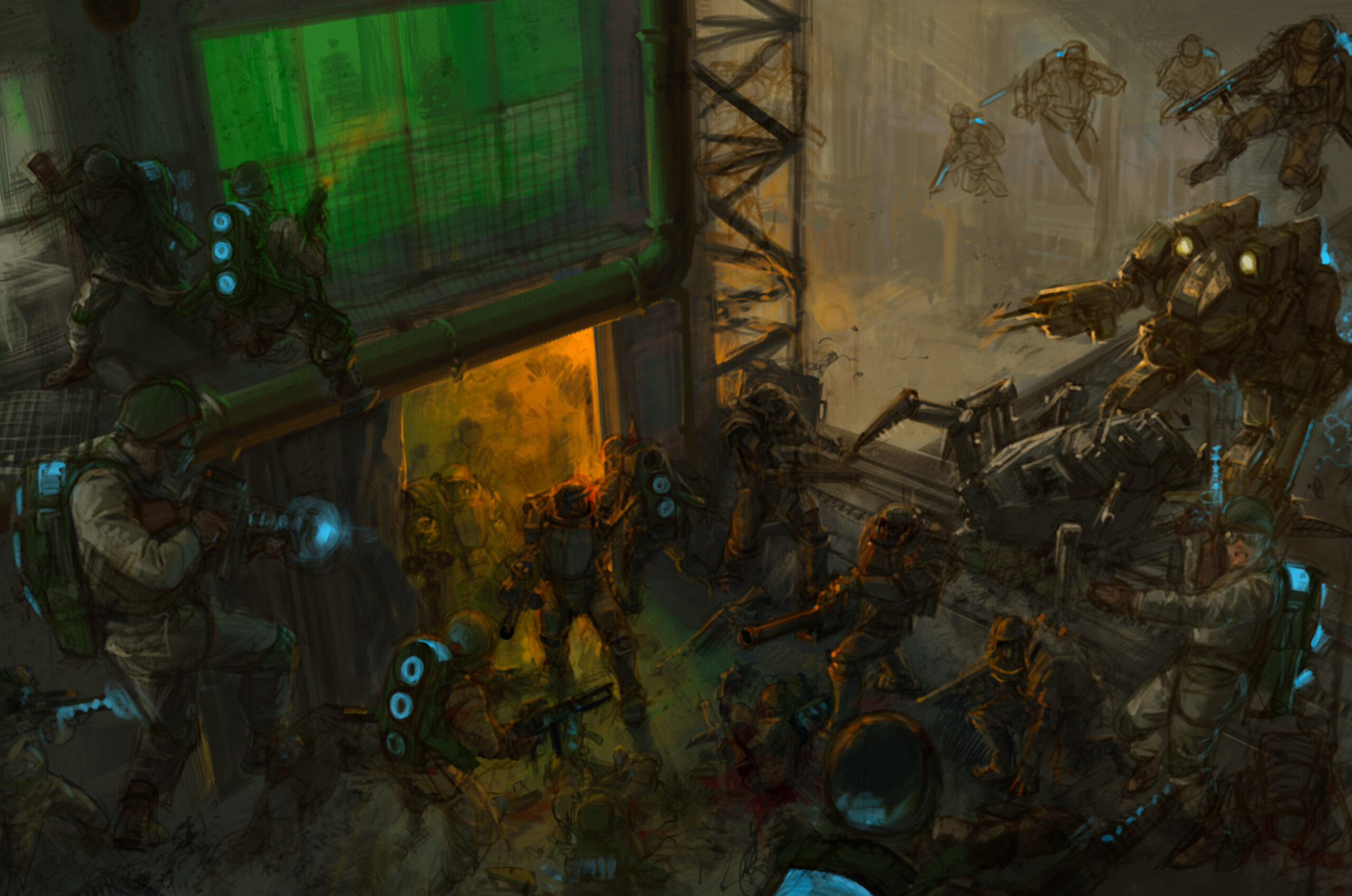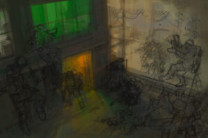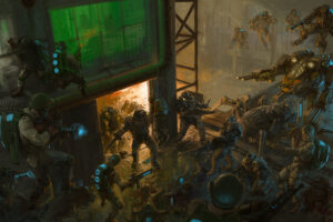 We were also treated to a look behind the curtain at the process of how legendary artist Stefan Kopinski created the iconic artwork that launched the new edition of Konflikt ’47. Swipe through to see how it went from a barebones sketch through numerous revisions and additions to the finished piece:
