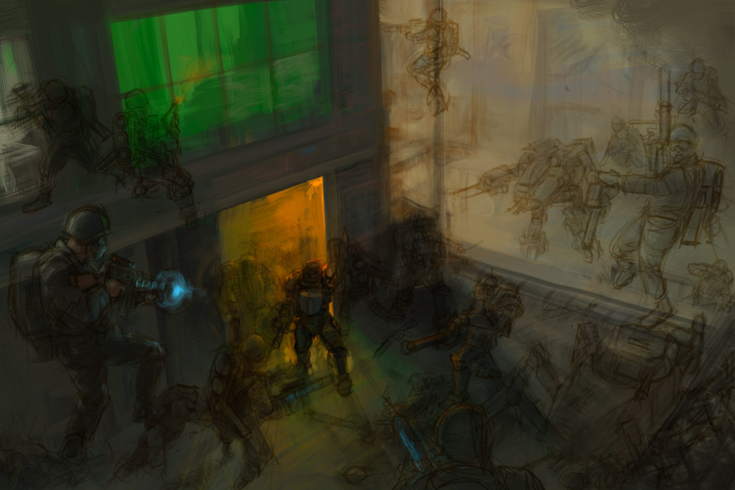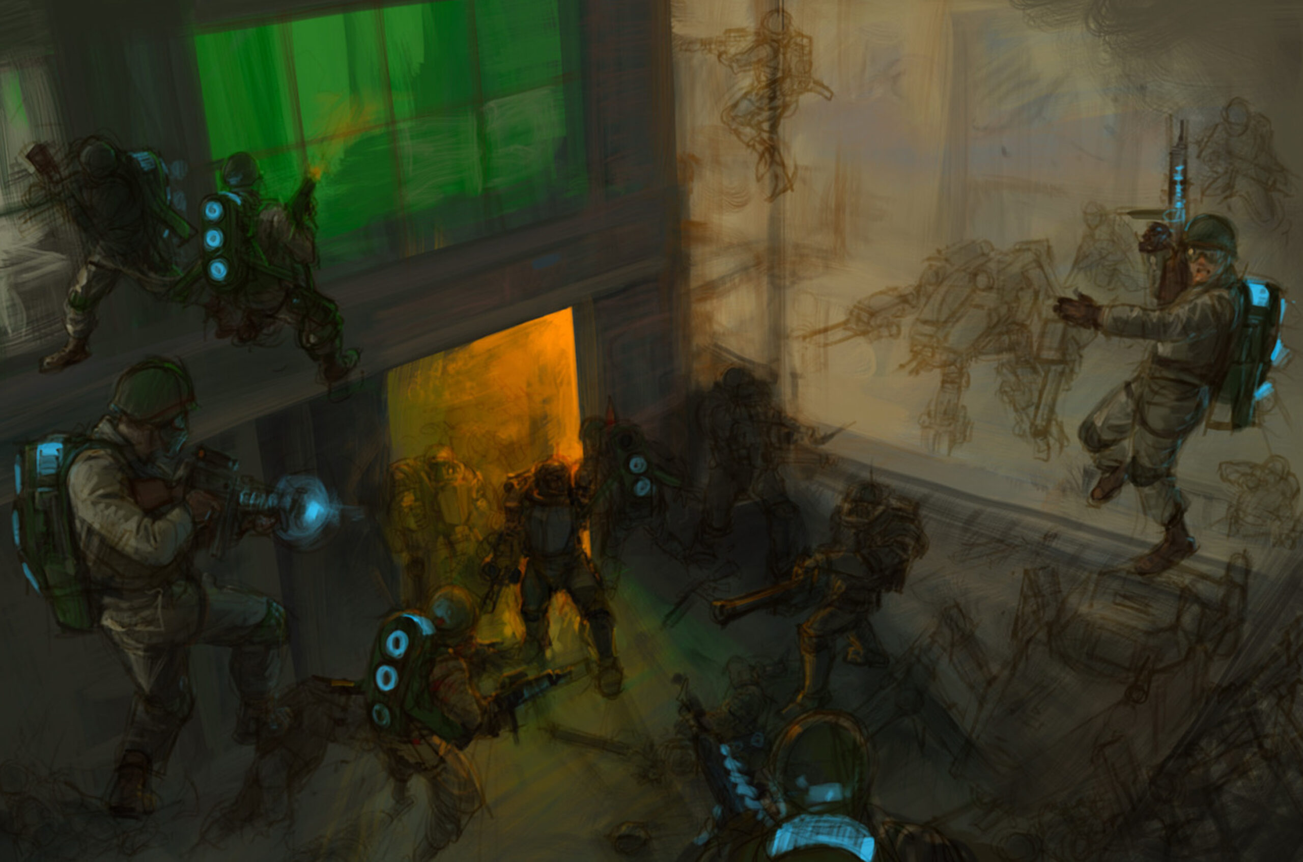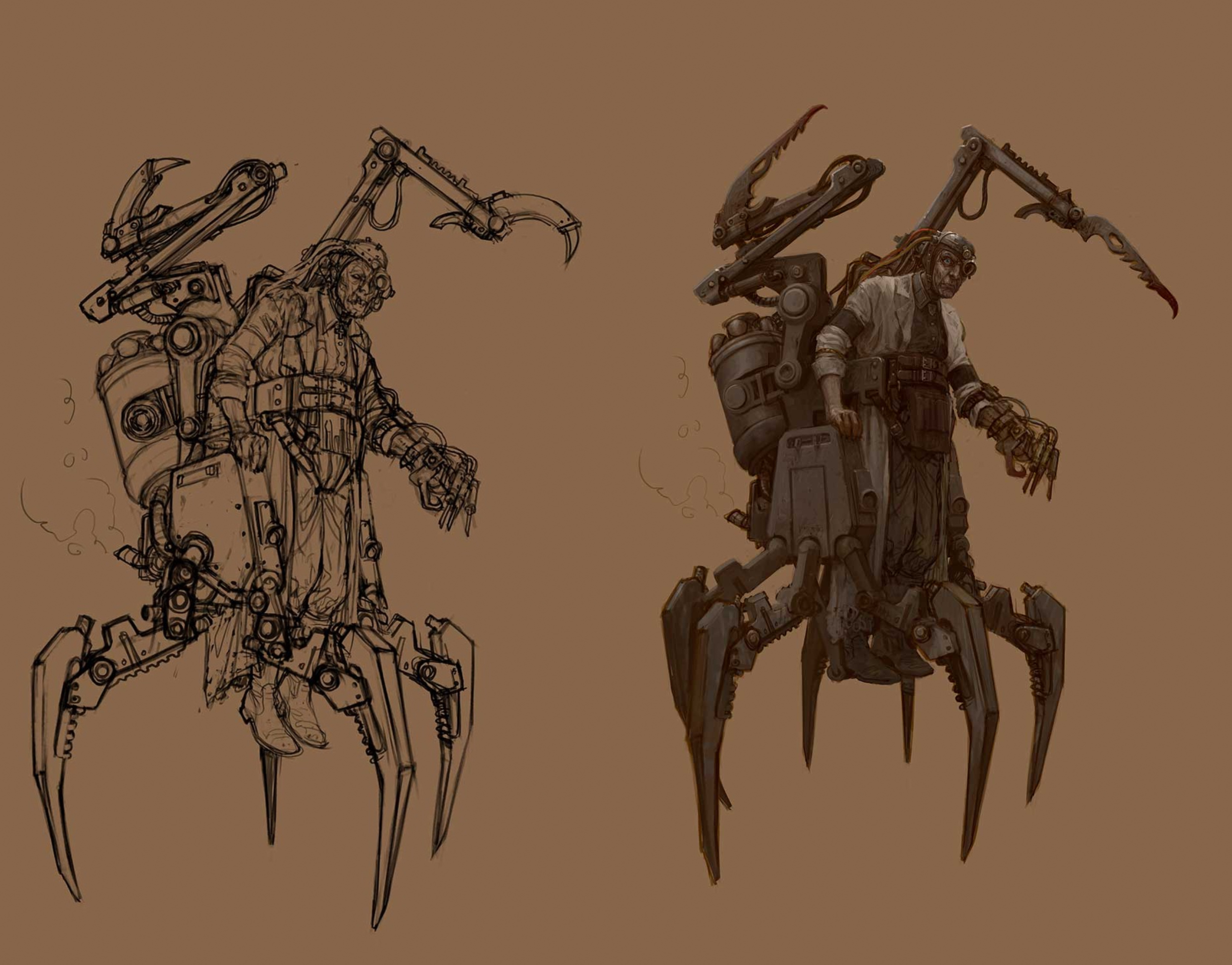 We were also treated to a look behind the curtain at the process of how legendary artist Stefan Kopinski created the iconic artwork that launched the new edition of Konflikt ’47. Swipe through to see how it went from a barebones sketch through numerous revisions and additions to the finished piece: