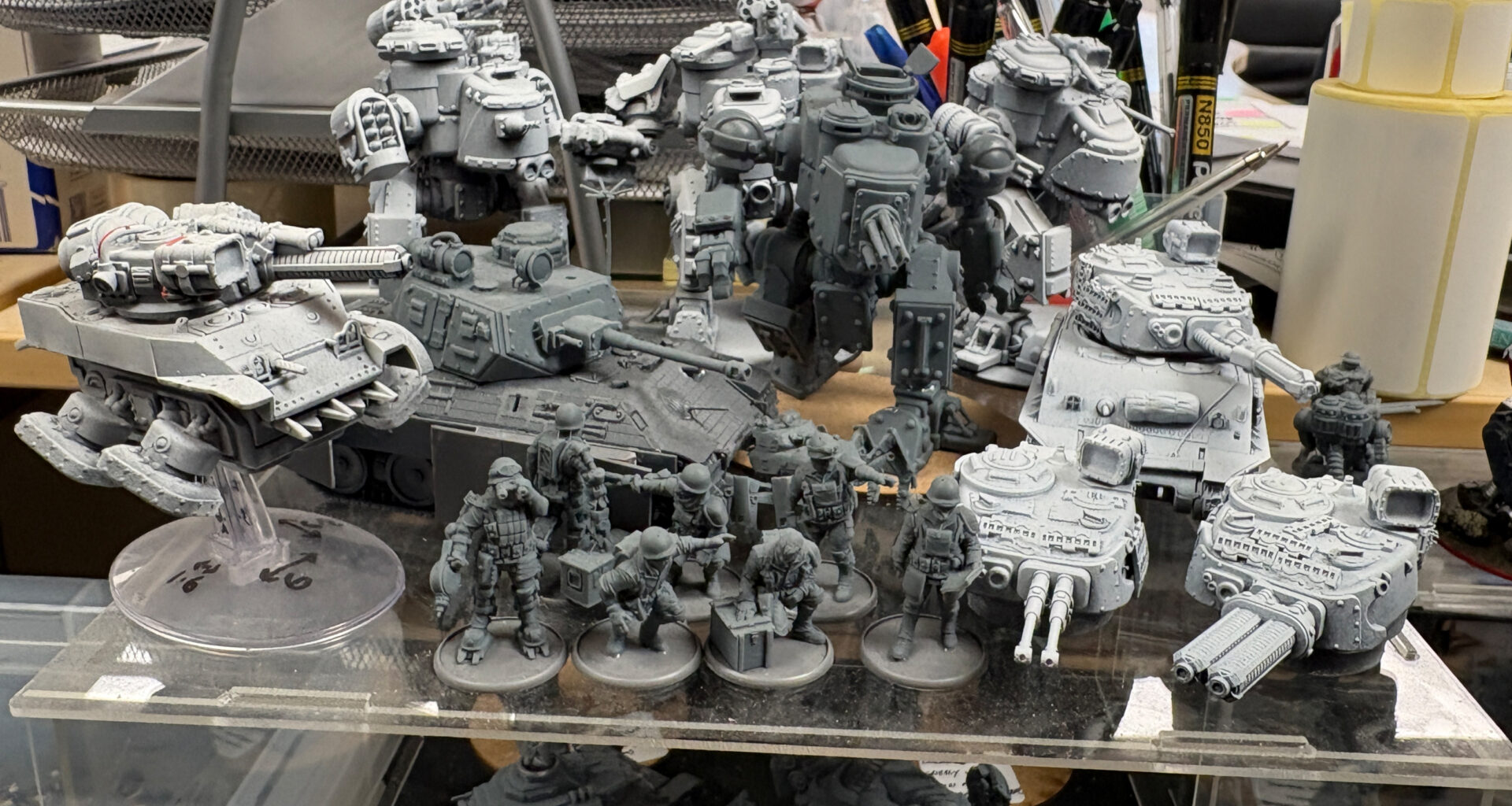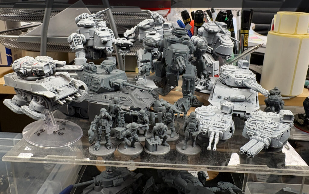 We also got to take an exceedingly rare glance at the desk of Jon Heeney, one of the Design Studio Sculptors. Familiar to those who’ve been on our HQ tours, Jon’s workspace is a treasure trove of concept work, prototypes, pre-production samples, and more. This is just a fraction of the goodies scattered about his station, but we reckon every Konflikt ’47 fan will find something of interest in this snapshot!