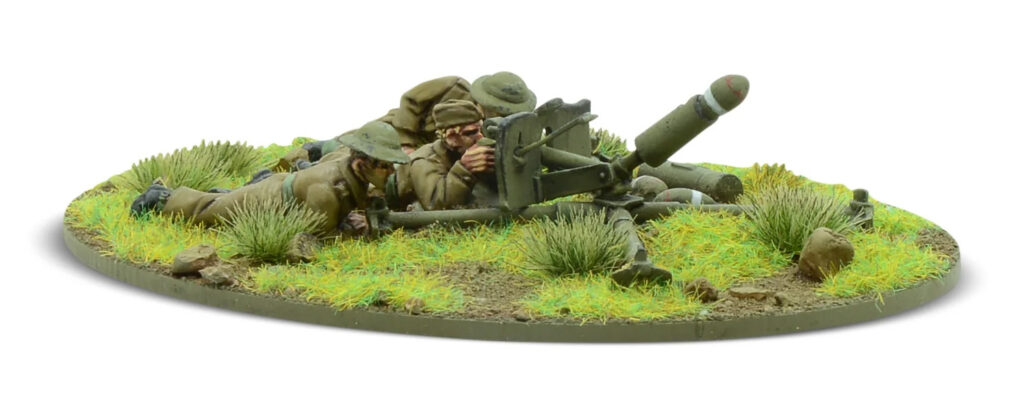 We’ll start with the Blacker Bombard! One of a clutch of unconventional weapons hastily developed by the British after Dunkirk to defend against the anticipated German invasion, this weird-looking spigot mortar (essentially a mortar without a traditional barrel, where the round fitted over a ‘spigot’ or spike instead of inside a tube) hurled a 20-pound high explosive shell that was theoretically supposed to stop German Panzers. While this seems unlikely, on the Bolt Action tabletop it’s actually quite a nifty little weapon against infantry. 40 points at Regular to chuck a 2” template at rifle range? Go on, then! It also has the added bonus of looking really peculiar, giving you the satisfaction of watching your opponents double-take when you deploy it. It’s been a staple of Armies of Great Britain over the years, and it proudly takes its place in Third Edition to sling HE with great enthusiasm and unusual mechanics.
