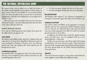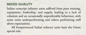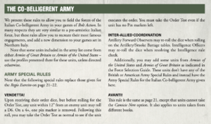 Remember we said that Armies of Italy would cover both pre-and post-Armistice forces? We weren’t kidding. Also joining the party are the German-backed Republican Army, and the Allied Co-Belligerent Army, with their own unique units, force selectors, and of course special rules. One book – three ways to play an Italian force!