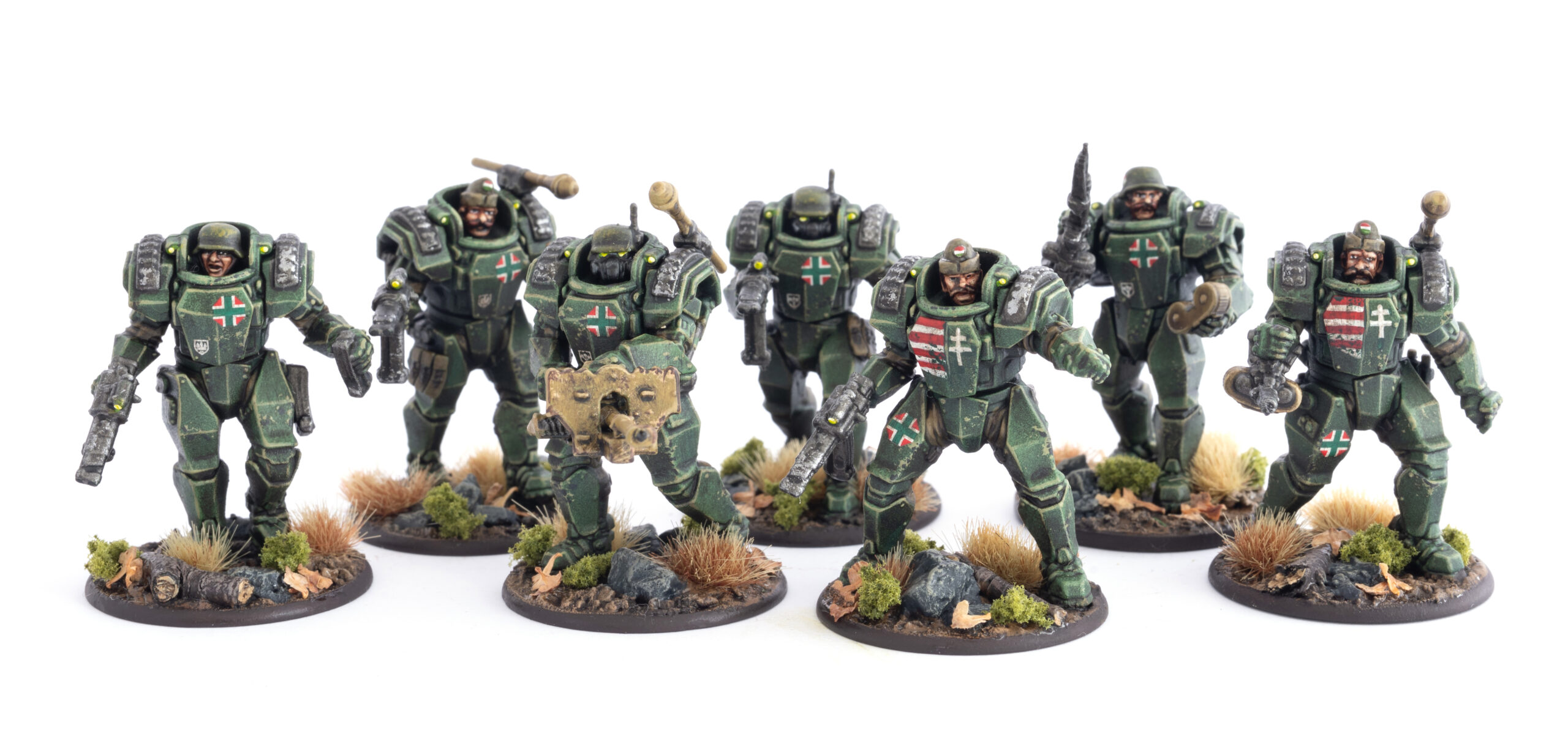 I’ve had a fascination with Hungary and its history for a while and have collected a large army for Bolt Action, so extending this into Konflikt ’47 was a natural progression. What is particularly fun is I can draw on different eras of Hungarian martial history other than WW2 and mix it in as the setting is very accommodating of this. Once I saw the direction of the Axis forces in the 2025 version of the game I was immediately inspired to give my own twist to my army. The heraldry on the Stahltruppen and Vogelspinne walkers is inspired by medieval Hungarian knights, Napoleonic Hussars, as well as WW2 insignia. I love that you can do that with this setting!