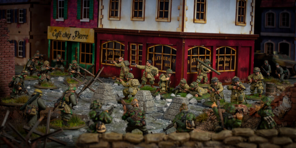 A US Airborne platoon pauses amidst a recently captured French village, grateful for a chance to rest after a gruelling few days of combat. Their commander, a particularly thirsty lieutenant, makes a lucky discovery – the wine cellar of a small restaurant is still fully stocked! Ordering his men not to disturb him for a couple of hours, he locks himself inside to ‘write some reports’. Little do the paratroopers know that a German counterattack is imminent…