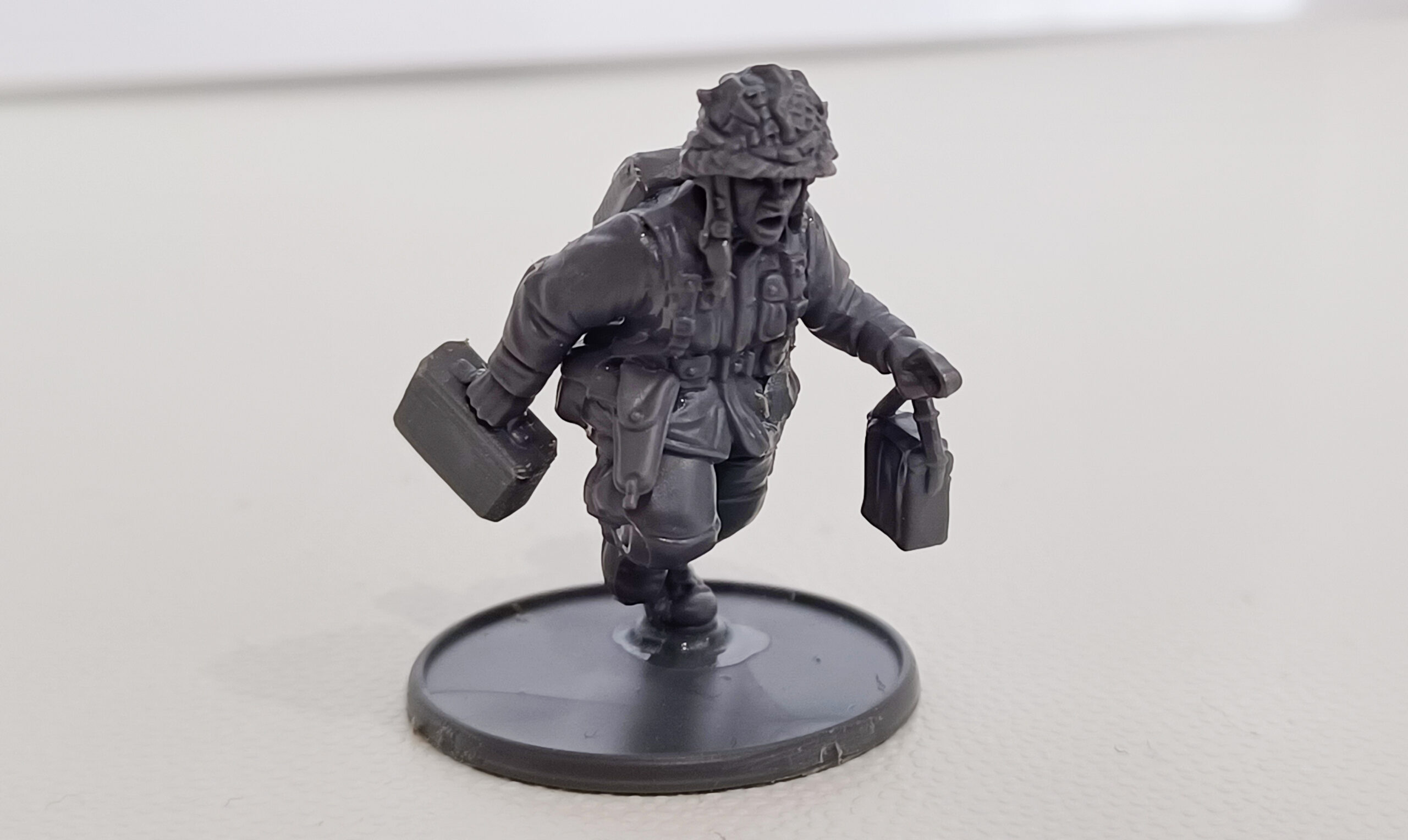 I don’t care how long you’ve been wargaming, cracking open a brand new box of miniatures will always be a fun moment. There’s so much potential, and so many goodies on the sprues just waiting to be built. As one of our newer kits, the D-Day Airborne are absolutely packed with detail, and designed to be easy to build. I decided to start with just a random ‘bod’ from one of the Paratrooper Squads, to get a feel for the kit and how it all went together. Usually when I’m building a tournament army, I tend to assemble my models with the absolute bare minimum of extra equipment to make them as quick to paint as possible, but since time wasn’t a consideration I decided to aim for a middle ground, adding backpacks and a few extra ‘belt kit’ details.