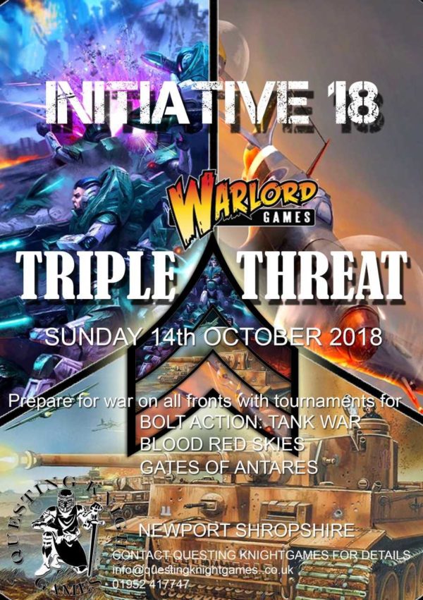 This year’s theme is set to showcase and support WARLORD GAMES with a specific focus on TANK WAR, BEYOND THE GATES OF ANTARES & BLOOD RED SKIES making INITIATIVE 18 a Triple Warlord Event which gives rise to this years event name of ‘Warlord Triple Threat’
