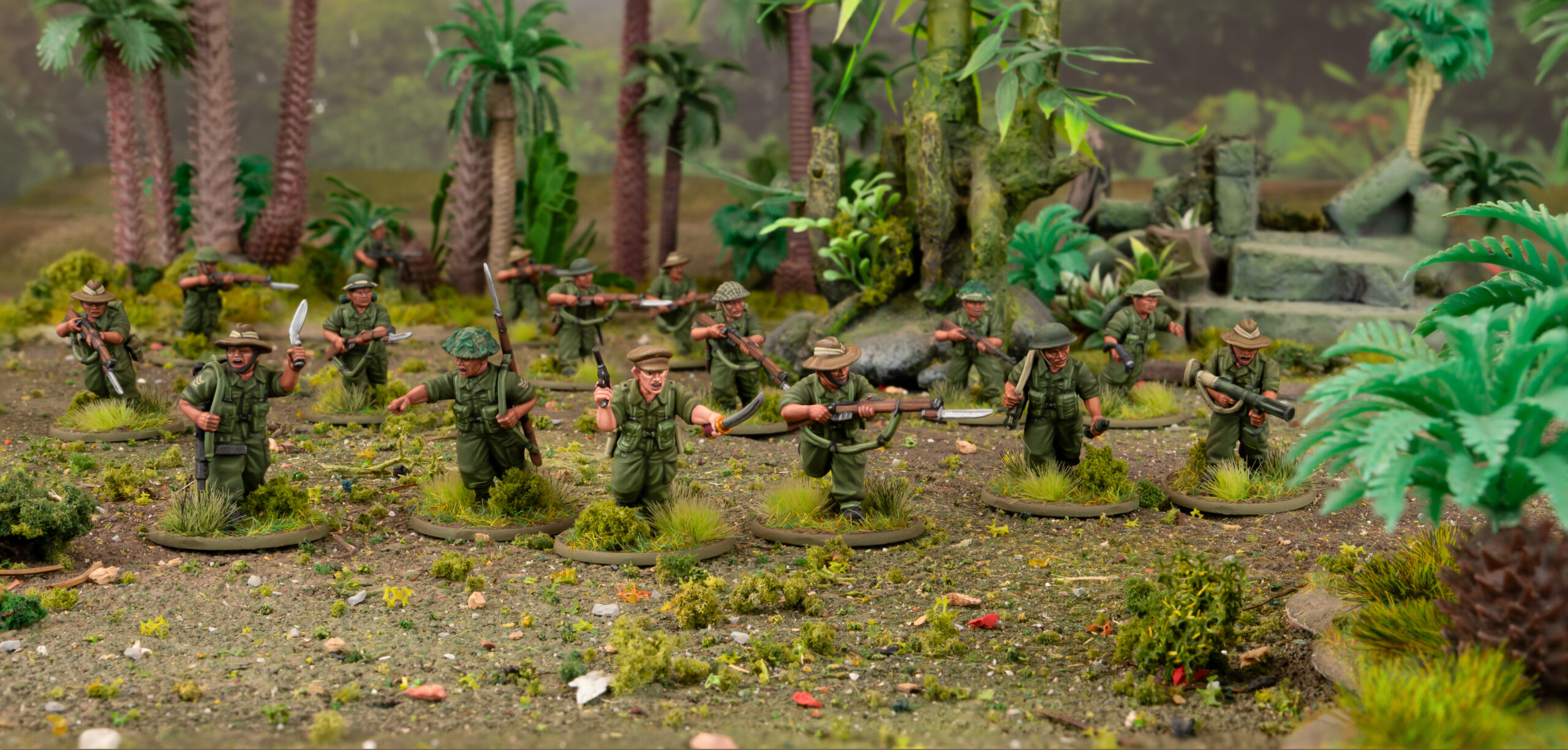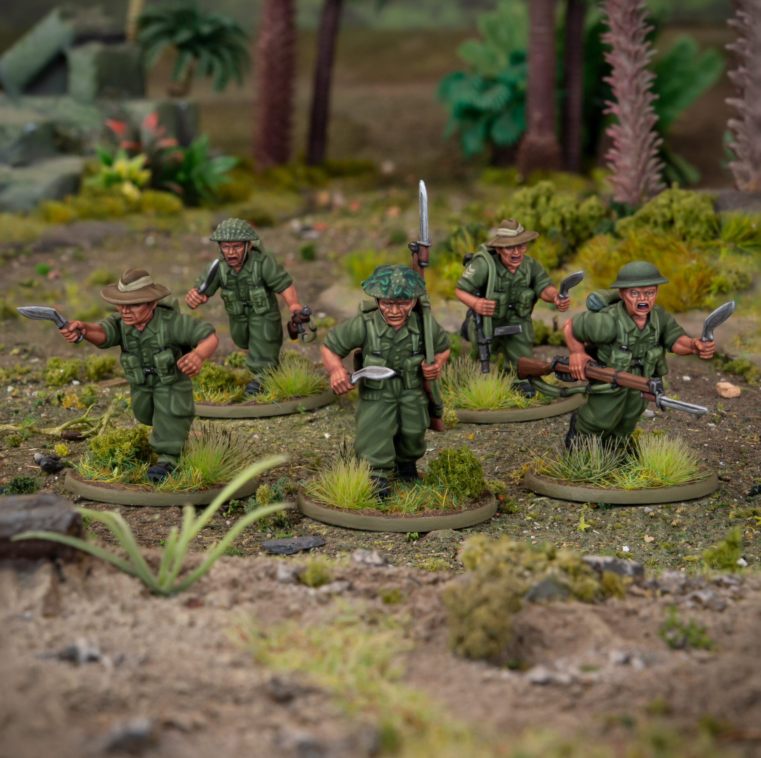 That’s right – the legendary Gurkhas are back in the rules, and even better, they’re back as a plastic infantry box! We’ll be diving into this newest sprue in detail soon, but for now, check out the painted prototypes! As you can see, these chaps are set up for jungle fighting, and pack plenty of lightweight firepower, including light mortars, PIATs, and the fearsome flamethrower – can you say ‘Gurkha Engineers’?! Naturally, no Gurkha would be without their iconic kukri knife, and these are well represented in this kit – perfect for a formation with a proud track record of getting stuck in. With Armies of the British Commonwealth allowing you to field entire armies of Gurkhas, courtesy of the Indian army list, this kit is the perfect way to get them on the table!