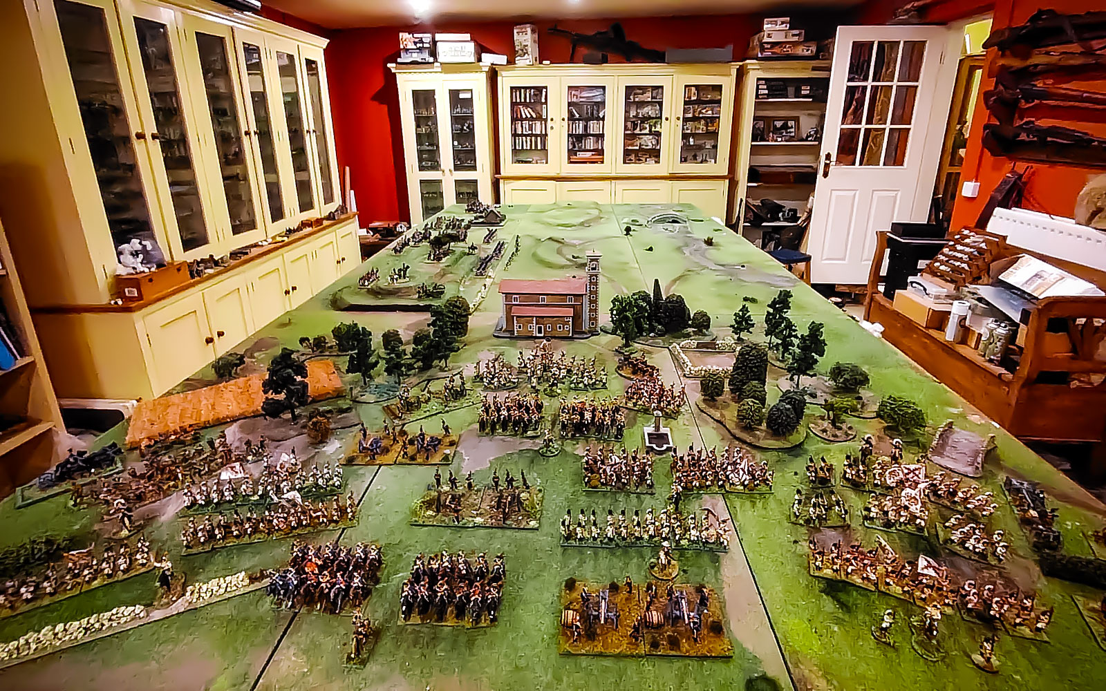 Note the Grenadier company with red cords and plumes, and the Light company in green. Although the colours probably wouldn’t have been carried in 1815, every wargamer loves a good standard, and John’s no different!