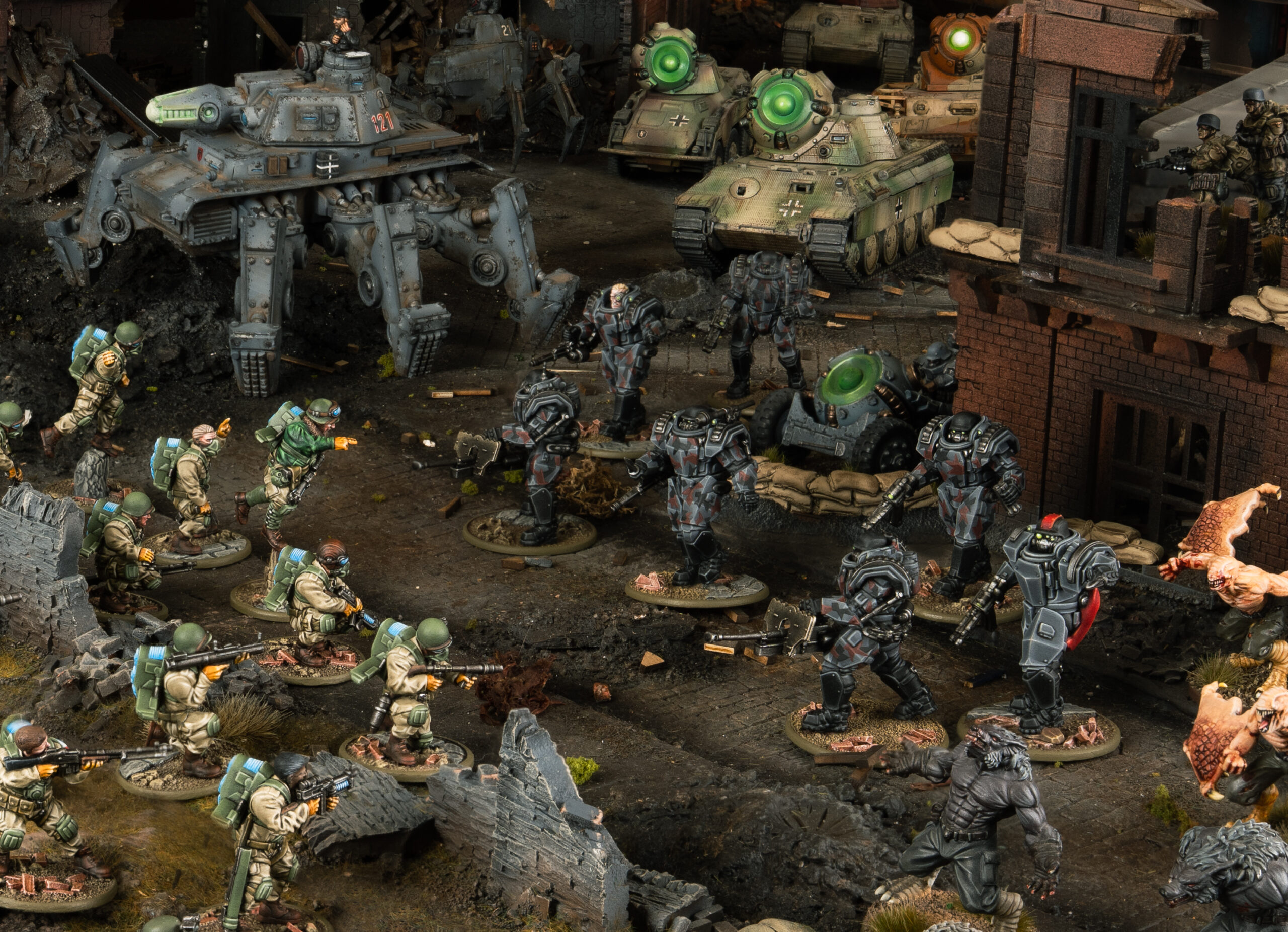 1947 sees the Stahltruppen wherever the fighting is thickest. Deployed in small numbers to lead the most critical assaults or defend positions that must not be allowed to fall, their arrival on the battlefield means that the fighting is about to intensify exponentially. This, coupled with their often aloof nature, means that their presence is seen as a mixed blessing by many ‘regular’ Axis forces, but their combat prowess is undeniable. Axis propaganda and enemy intelligence reports alike agree that, when employed at the right time and in the right place, even a small number of Stahltruppen can turn the tide of battle. Initially jealously guarded by the artillery, the Green Vault leadership appears to have run out of patience with this particular squabble, and Stahltruppen can now be found bearing the colours of multiple branches of the Axis military.