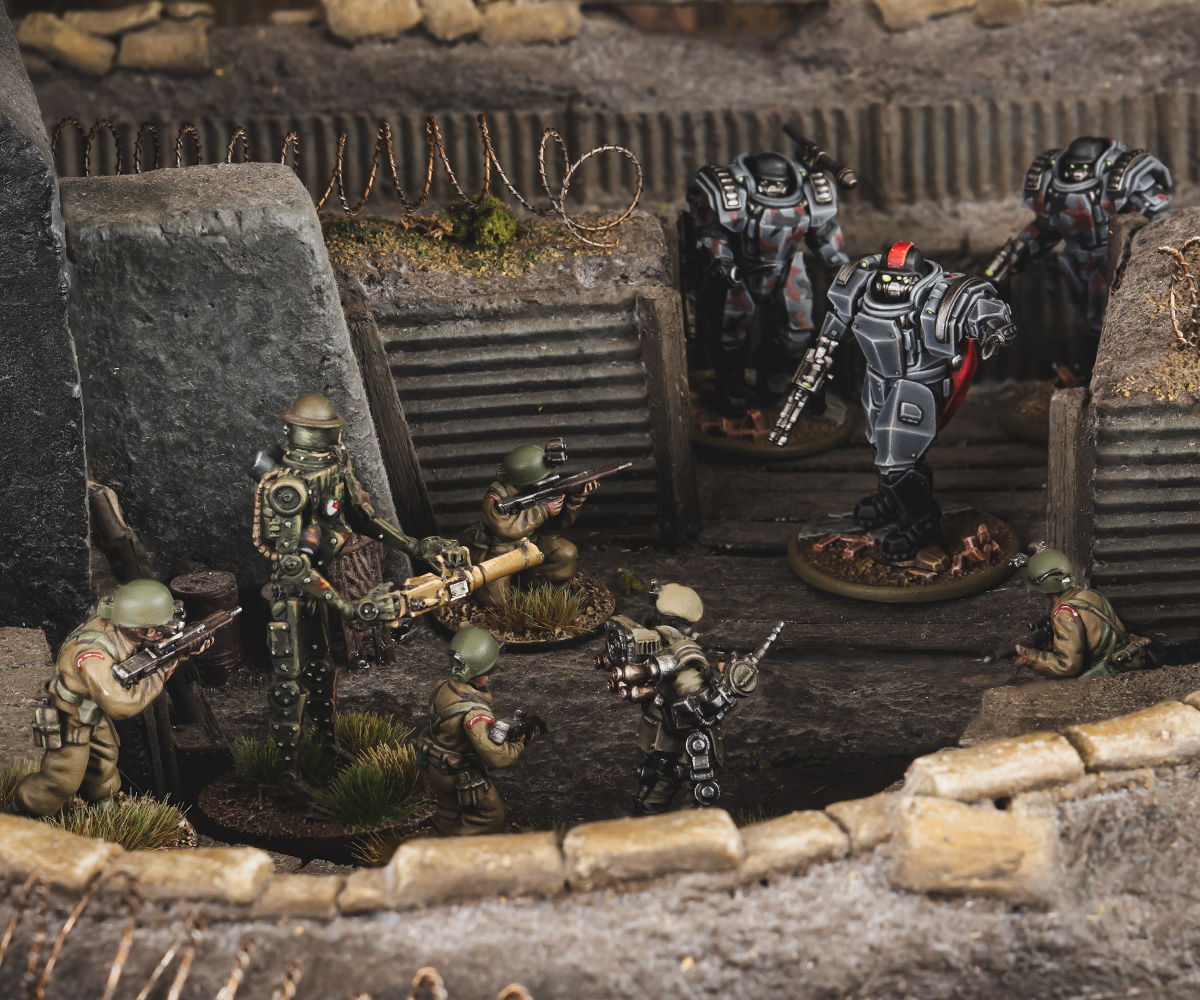 Axis Stahltruppen are (for now!) the heaviest infantry in the game. Boasting a massive 7+ Damage Value and the Augmented special rule, they’re impervious to small arms fire and can fire their heavy weaponry without the need for loaders, while their Vormarsch! Active Rift Ability allows them to Exhaust their Rift Die to automatically pass their Order Check and discard all Pin Markers when given an Advance order. This ensures that, no matter how much incoming fire they’re taking, your Stahltruppen will keep grinding forwards, eager to bring the hammer of the Green Vault down on the enemies of the Axis.