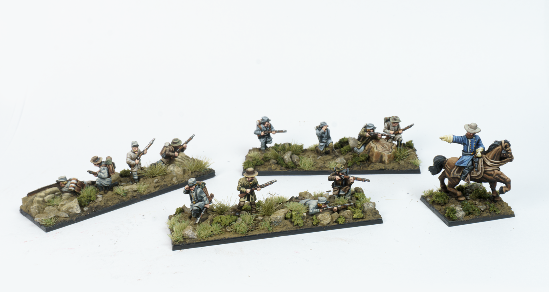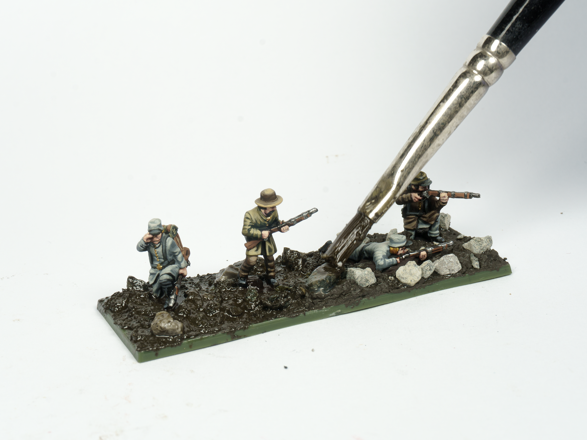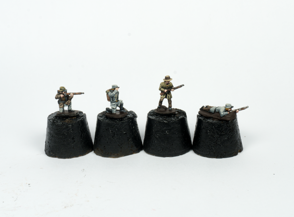 I want to show too how I work on my Epic Battles Black Powder figures so that they blend naturally into their bases. For this example, I’ll be using these other models from my American Civil War collection: Confederate skirmishers.