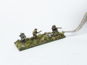 To make the ground a little more interesting, I use modelling tweezers and PVA glue to add small stones across the base. As well as making the base look far more realistic, these stones also help conceal the figures’ bases even further.