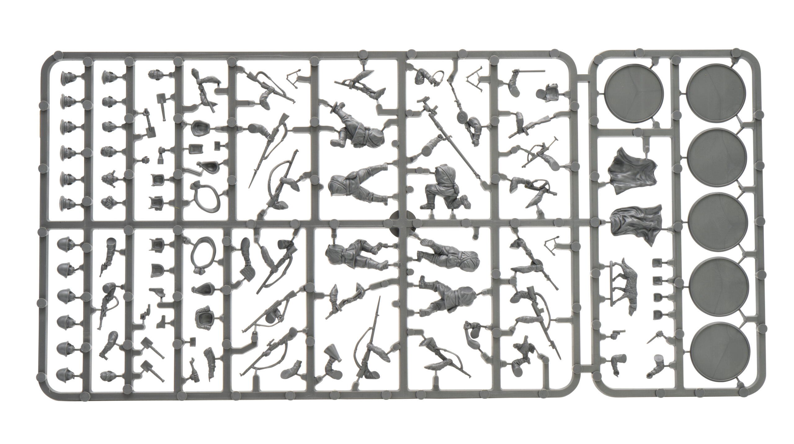 Your troops will never win a battle if they can’t get ahead (geddit?), and fortunately the sprue is packed with head options. With a whopping 20 heads per frame, you’ve got everything you need for a properly varied force. Kicking off are of course six ‘standard’ heads in helmets, perfect for every flavour of Soviet troops, while alongside them are half a dozen in the peaked caps of the dreaded NKVD. Combining these with a simple painting solution (blue trousers!) and the new rules found in the book allow you to field entire armies of political soldiers, all in plastic! Also joining the fray are the Bolt Action staples of an officer’s cap, side-cap, bare and bandaged heads, and two more that are a little bit special. For the first time in Bolt Action, we’ve got plastic female heads, perfect for your Soviet snipers, medics, radio operators, and more!