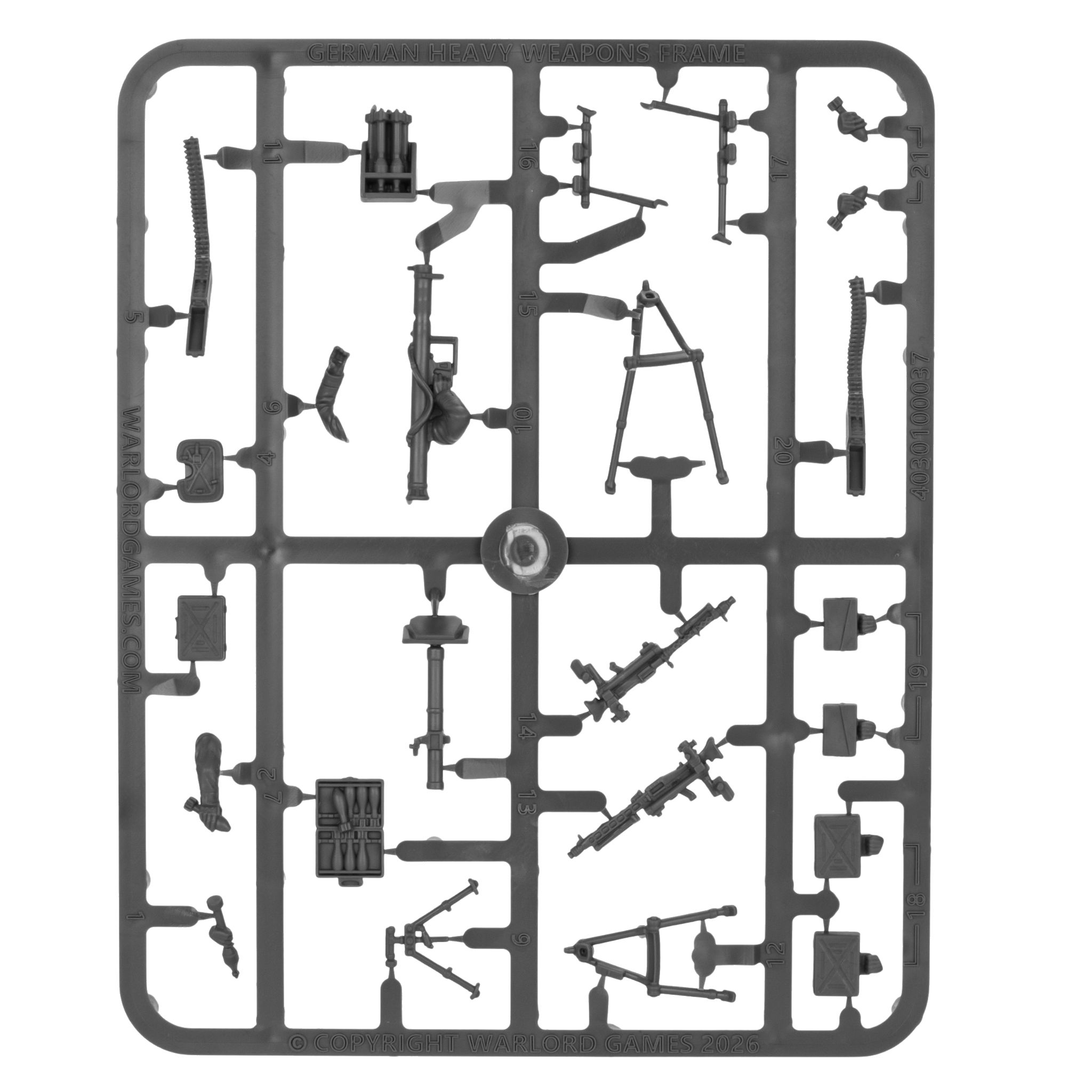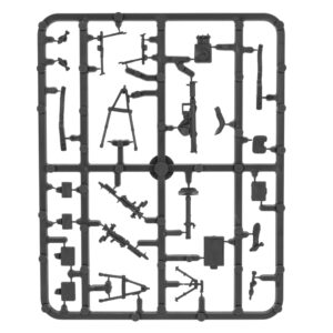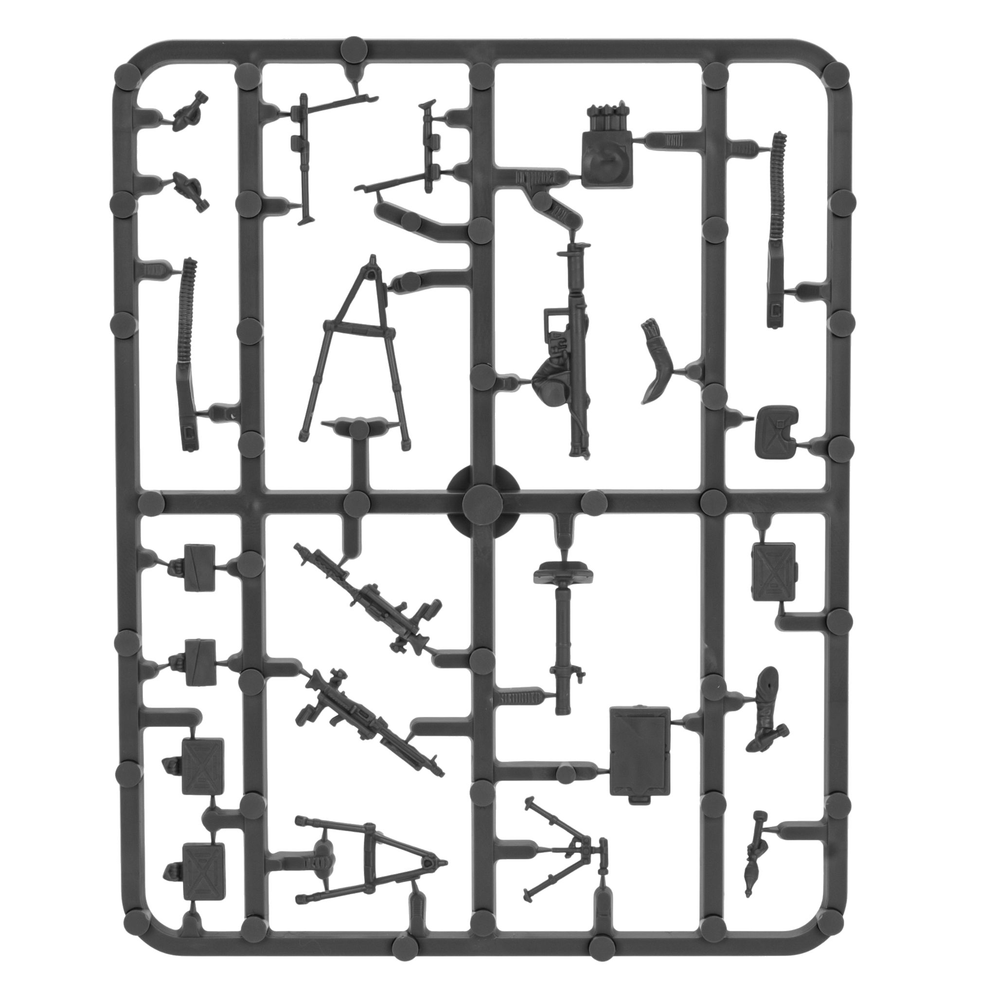 The way it’s going to work is this: We’ve created a trio of ‘core’ sprues – in Germany’s case the PaK 40, support weapons, and crew frames. The weapon and gun frames are self explanatory – they build a PaK 40, MG 34/42 machine guns, medium mortars, and Panzerschrecks, with plenty of variants and additional options, as you can see below. Don’t worry – we’ll be going through the kits in detail a little later on!